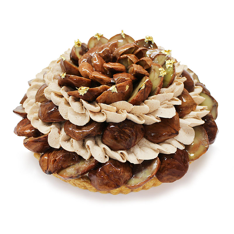 熊本県山江村で収穫される「やまえ栗」は一般の栗より二回りほど大きく、糖度が高い和栗です。和栗のモンブランクリームとあわせてマスカルポーネのベースに飾った、秋のおすすめケーキです。