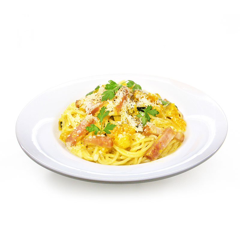 ベーコンと甘みのあるホクホク食感のかぼちゃをあわせ、チーズと胡椒を効かせて、クリーミーに仕上げました。ベーコンの塩味とかぼちゃの甘さが絶妙なバランスの逸品です。