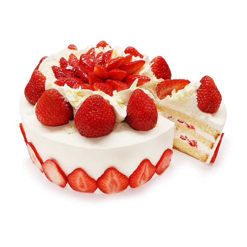 福岡県産の「あまおう」をふんだんに使用し、スポンジ、生クリームと合わせて飾り付けました。ホワイトチョコレートと共にお楽しみください。