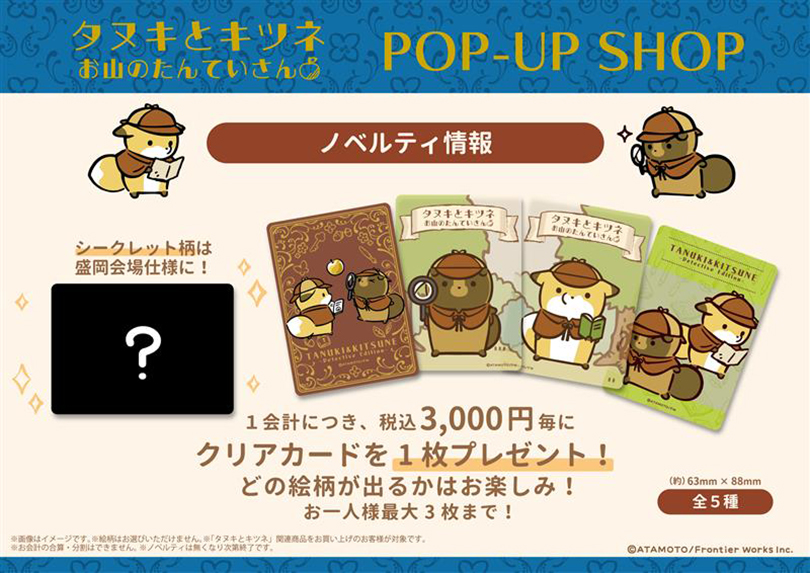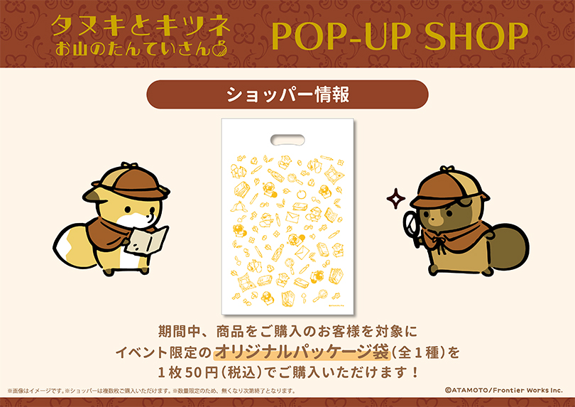 8月より全国6都市で開催のPOP UP SHOP!大人気WEBコミック「タヌキとキツ ネ」の完全オリジナル描きおろし原画と なる「お山のたんていさん」をモチーフに したグッズ等を多数ご紹介いたします!