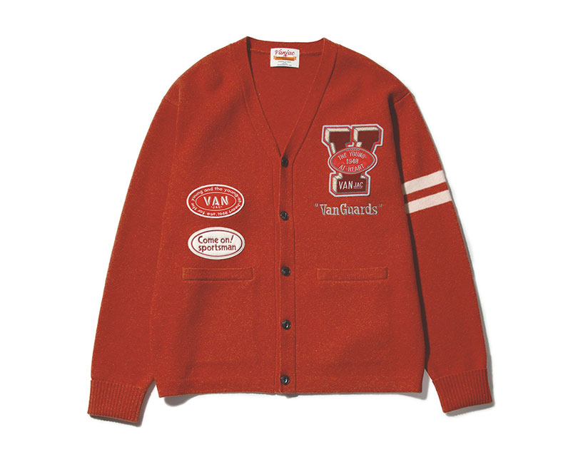 VAN定番のレタードカーディガンをワントーンで仕上げた落ち着いた印象のアイテム。