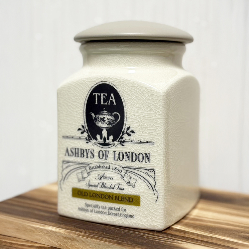 アシュビィズオブロンドンの代表的なブレンドを陶器のキャディーでパッケージしました。