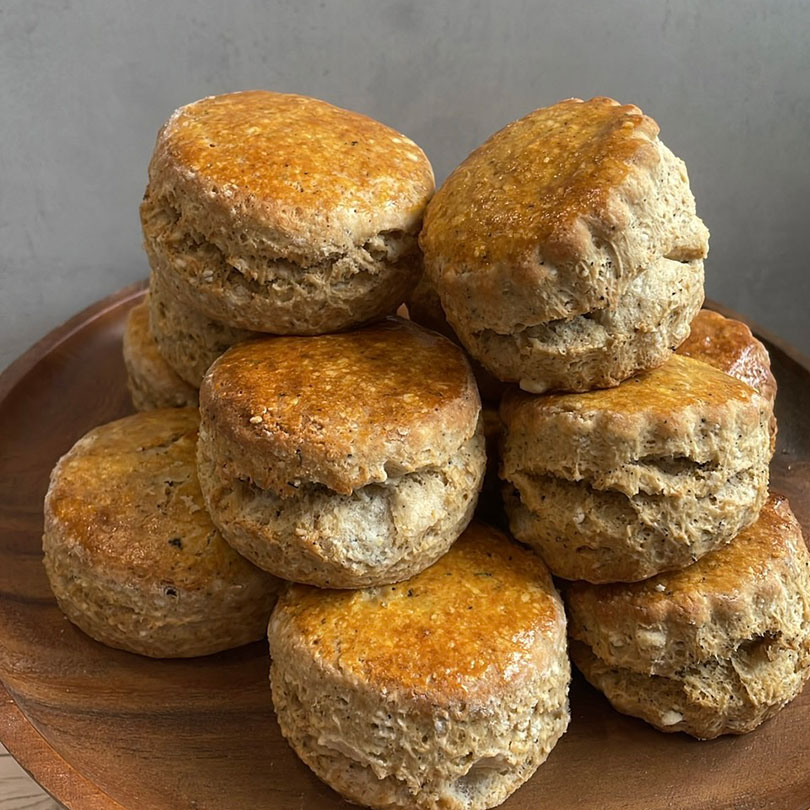 カカオとヘーゼルナッツが入ったチョコレートフレーバーを煮出して生地に練り込んだスコーンです。
