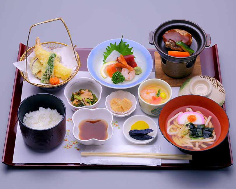 お刺身・天ぷら・茶碗蒸し、ハンバーグなど色々楽しめる『レディース御膳』をご注文のお客様に、ドリンクバーをサービスいたします。