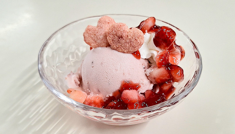 いちごとバニラアイスにダイスカットしたいちごをのせました。