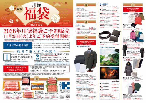 - ご予約いただいた福袋のうち2026年1月2日(金)にご来店・引換されなかった際は、無効とさせていただき、1月3日(土)に各売場で販売いたします。