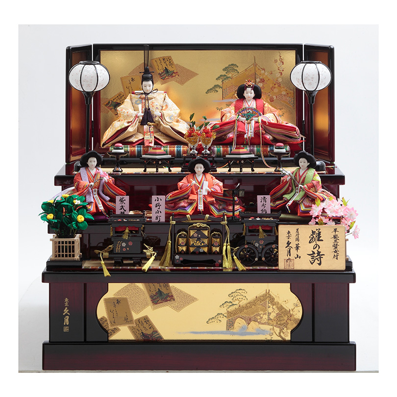 三人官女の代わりに、お子様が優しく賢く美しく育つようにという願いをこめて、平安三賢女と呼ばれる「清少納言」「小野小町」「紫式部」を配しました。