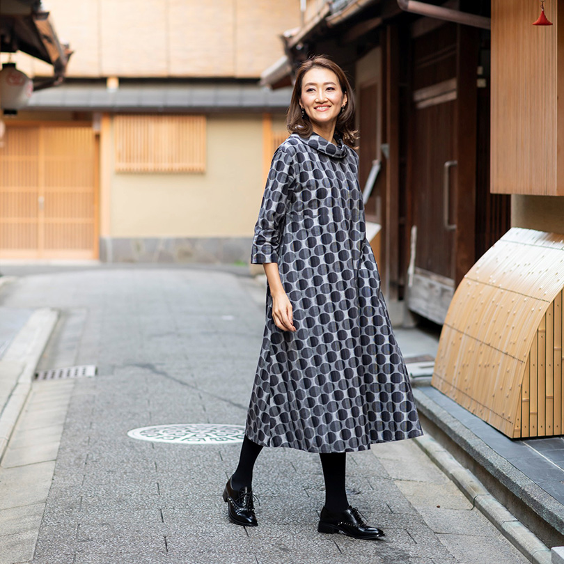 現代的なテキスタイル水玉柄の織りは、久留米絣の反物から仕立てた