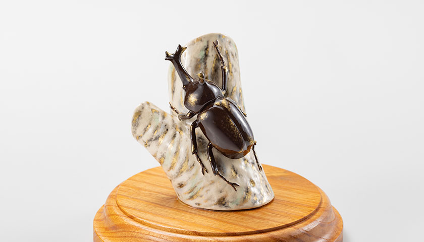 十五代 沈壽官が薩摩焼で表現したいテーマのひとつが「生命(いのち)」。 短い期間しか存在しない昆虫の姿に溢れる「生命(いのち)」のメッセージを込めつつ、昆虫たちと遊んでいた子どものころを思い制作した生命力溢れる 作品です。