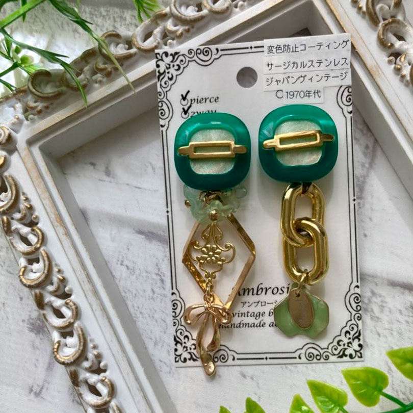 国内外のヴィンテージボタンを使用したアクセサリーです。